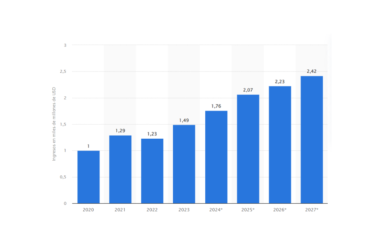 Las previsiones del comercio electrónico de la moda en Chile muestran incrementos significativos. En concreto, se estima que los ingresos del sector superarán los 2.000 millones de dólares estadounidenses a partir de 2025.*